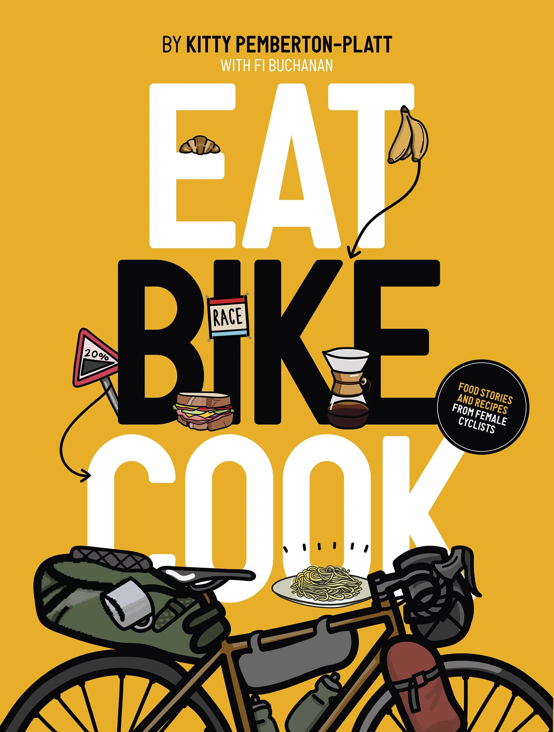 Eat Bike Cook, is a celebration of the female cycling community with womens' food diaries, chronicled with delicious, easy-to-follow recipes created by Fi Buchanan, which are charmingly illustrated by Kitty Pemberton-Platt.