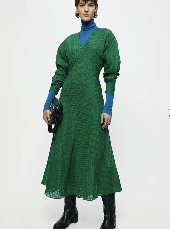 Could this green midi from Jigsaw (£250) replace your favourite little black dress? By adding the blue roll neck it becomes the perfect, put together day dress but by adding a heel and chunky, gold jewellery it’s instantly transformed for evening.