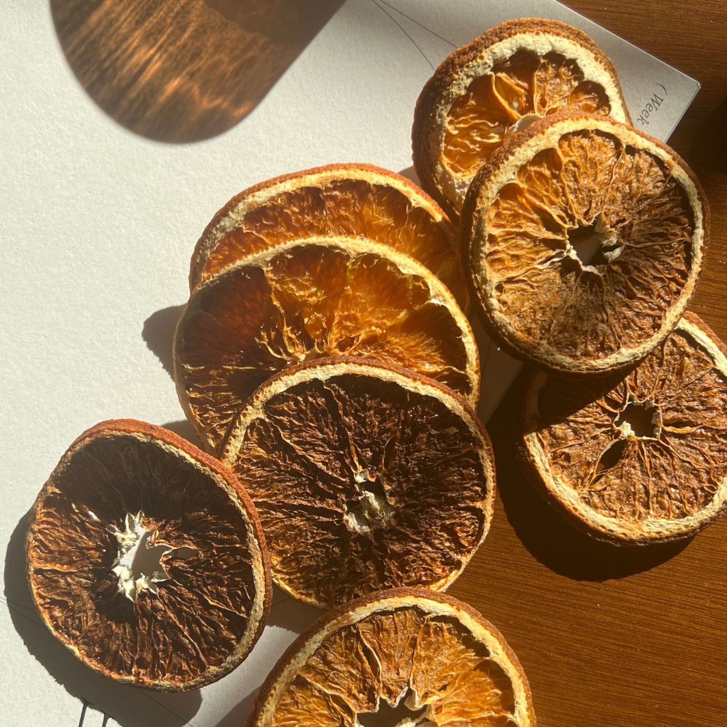 Decorative extras, dried orange slices, cinnamon sticks, pinecones, ilex berries, birch twigs or baubles
