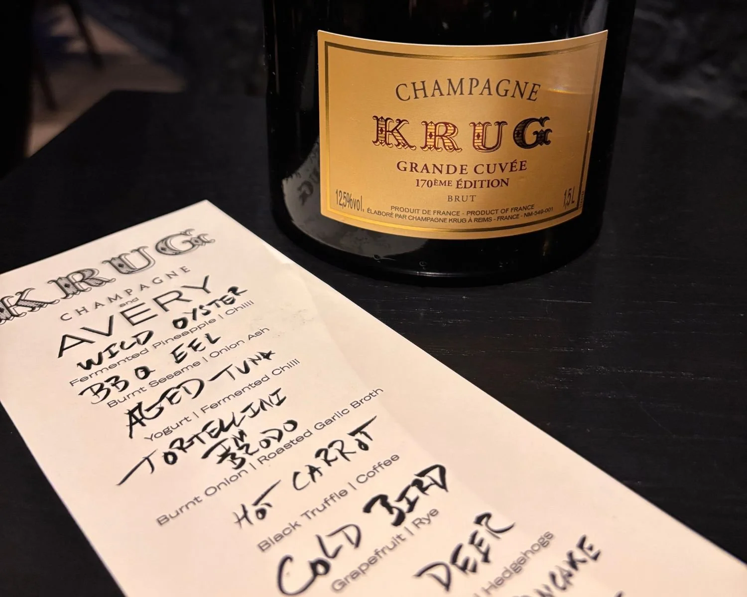 I was invited to experience Avery’s Krug Tasting Dinner, an exclusive evening celebrating five remarkable expressions of Krug Champagne — including rare vintages and a preview of the unreleased Krug Grande Cuvée 173ème Édition. Hosted by Jérôme Jacoillot, Krug’s Vineyards & Wine Manager and member of its esteemed Tasting Committee, alongside Brand Manager Juliette Beard, it promised a rare glimpse into craftsmanship at its finest — both on plate and in glass.