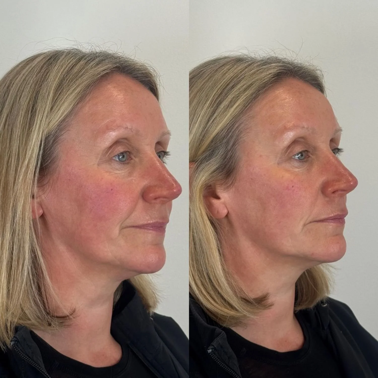 When Karen handed me the mirror afterwards, I was expecting to see a tomato. Instead, my skin looked calm(er), clear, and—yes—glowing. The redness hadn’t disappeared (yet), but my complexion felt tighter, brighter and noticeably more even. There was no downtime, no scary flare-up. Just results.