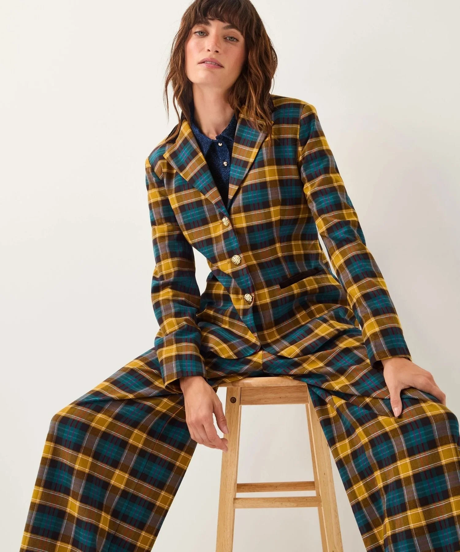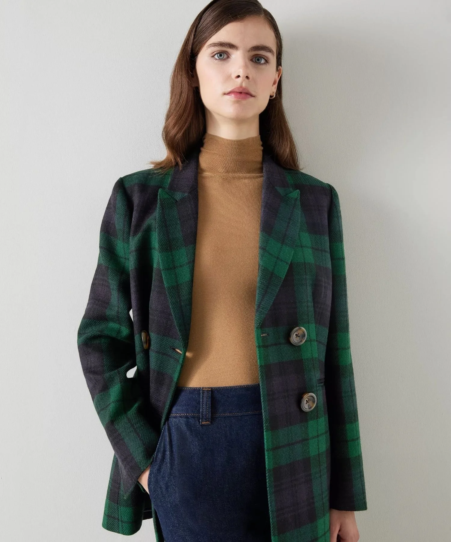 Longline blazers, razor-cut trousers, and softly structured shoulders — this is how to do tartan with polish. Keep the palette muted (greys, moss greens, dusky blues) and let the shape lead or make a statement and go for bold. There’s something about a check suit that feels quietly powerful — especially when you throw on trainers or loafers instead of heels. Minimal fuss, maximum impact.