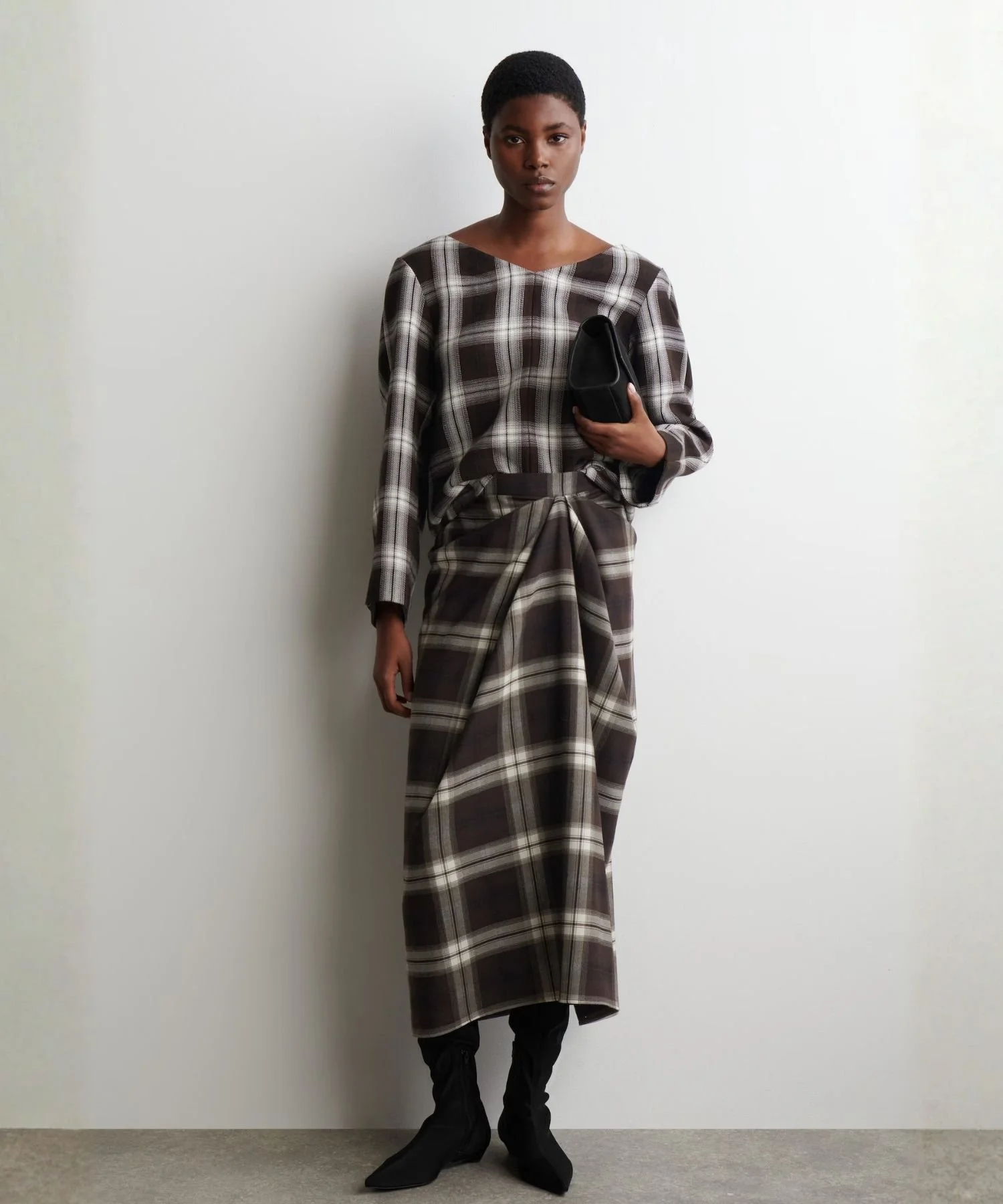This season, checks aren’t content with being a supporting act — they’re taking over the whole outfit. Matching tartan co-ords and full check looks are everywhere, and done right, they feel bold, modern and a little bit subversive. A cropped jacket with a matching mini, or wide-leg trousers and a blazer in the same plaid, can look effortless rather than overdone when you keep the palette refined — think greys, moss greens or deep navies.