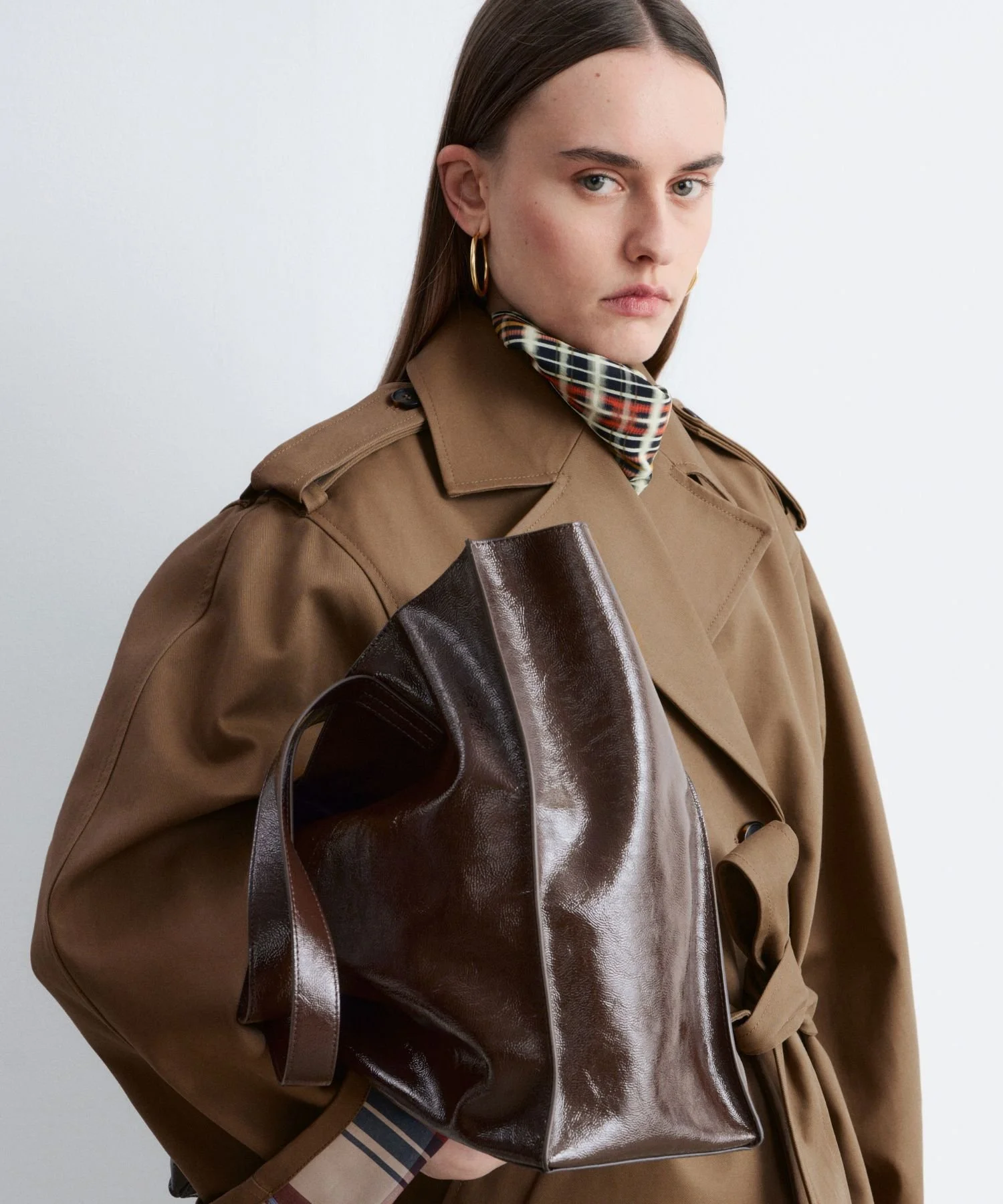 A tobacco suit worn as a set. A belted trench in muted shades. Refined wool separates that skim rather than cling. These are not reinventions, they are refinements. Shoulders are clean, waists gently shaped, trousers long and straight enough to graze the shoe.