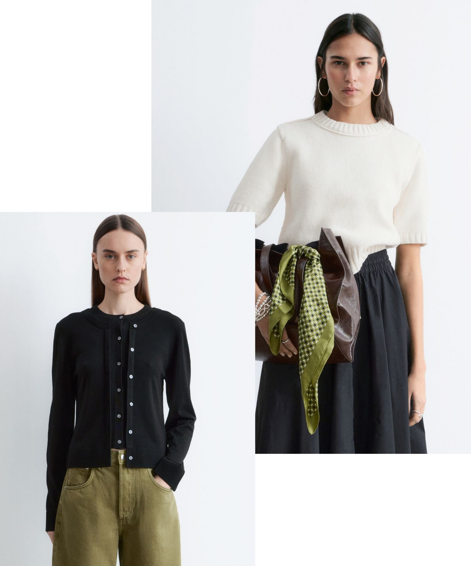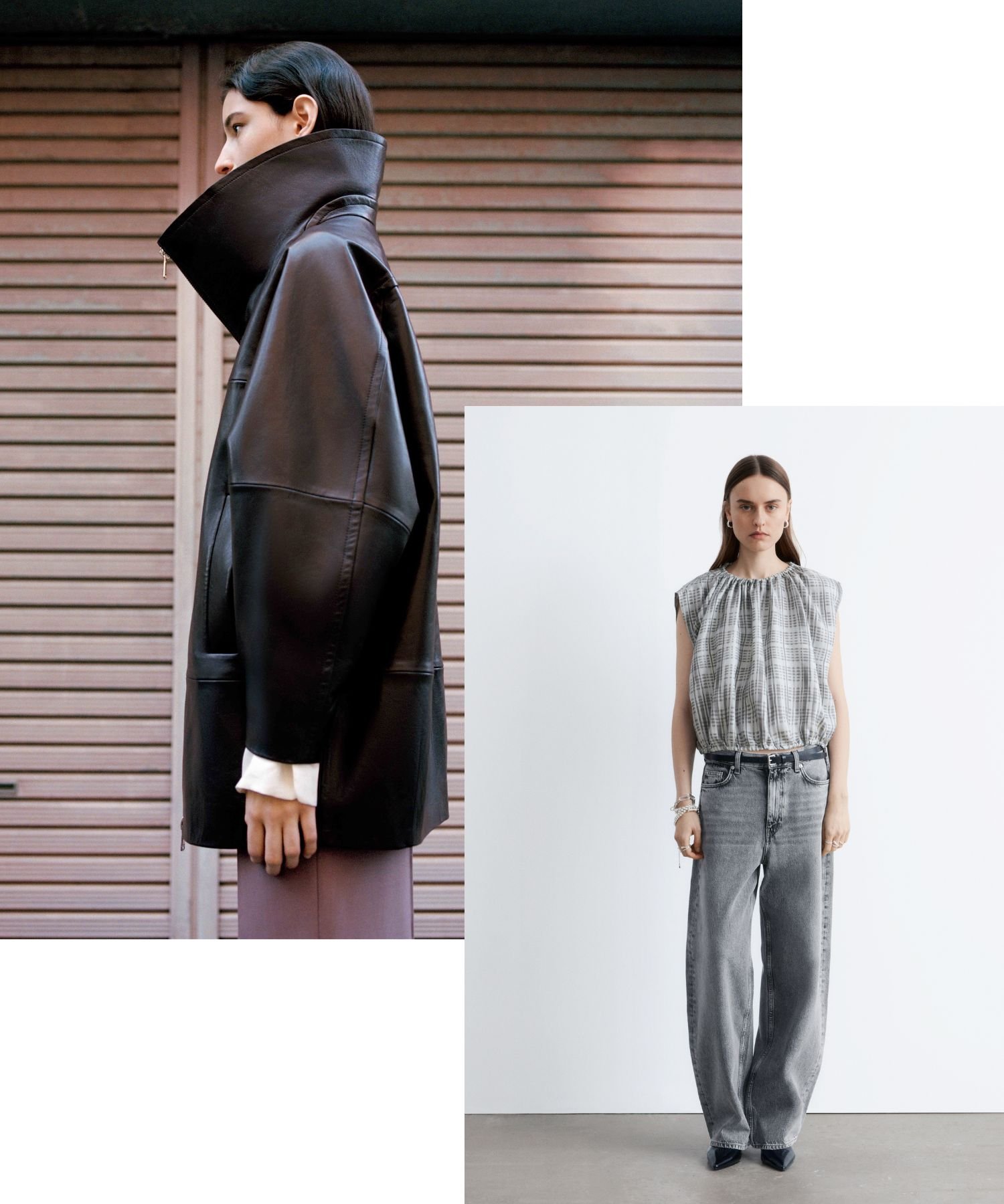 A blazer, clean through the shoulder and lightly shaped at the waist, brings instant structure. Or cinch your old favourite with a belt. Wide trousers look sharper with something close to the body above. A full skirt feels modern with a neat knit. An oversized bomber works best over a lean column. Head to toe looseness now feels less insouciant, more unfinished.